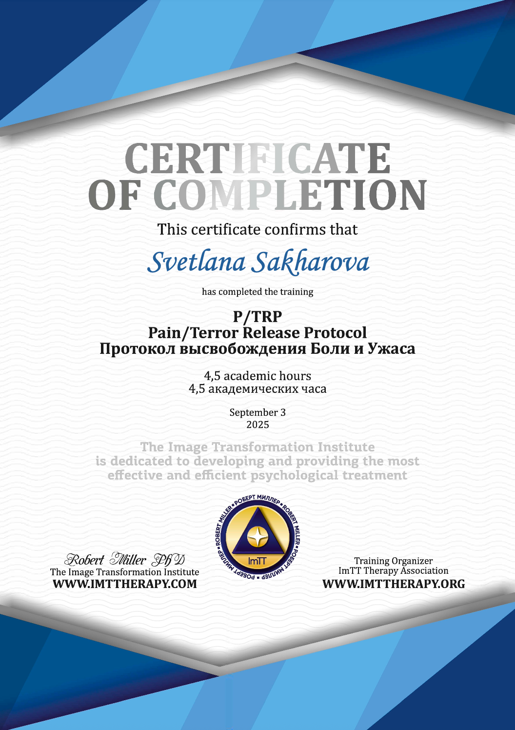 Психолог-консультант. EMDR-терапевт, сертифицированный Американской ассоциацией EMDR (EMDRIA). ImTT-терапевт.