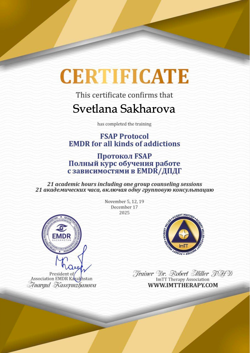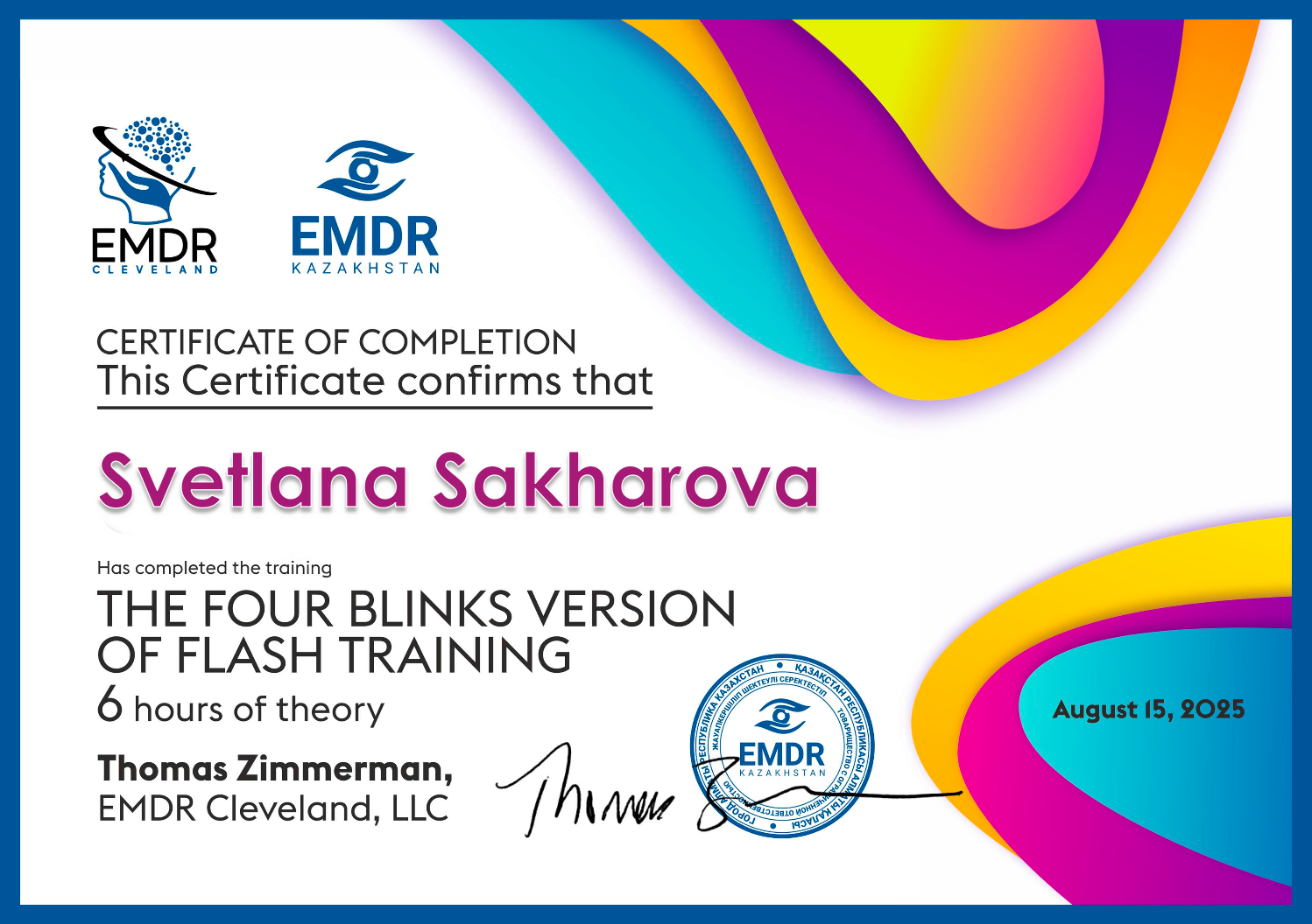 Психолог-консультант. EMDR-терапевт, член ассоциации EMDR Казахстан.